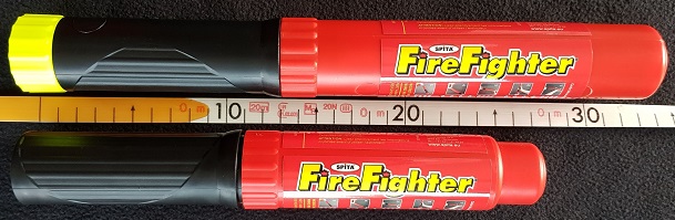 Het bovenste deel van een FireFighter-brandblusapparaat bestaat uit een metalen buis die de bluslading bevat. Het onderste deel is gemaakt van kunststof en dient als handvat. De belangrijkste verschillen met bekende poederblussers en schuimblussers zijn: